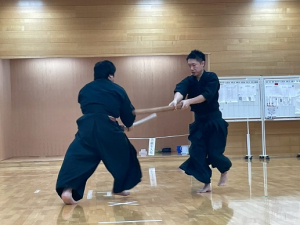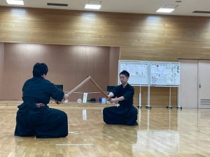 お昼の休憩時間に勇武館は、天然理心流組み太刀の形をご披露しました。